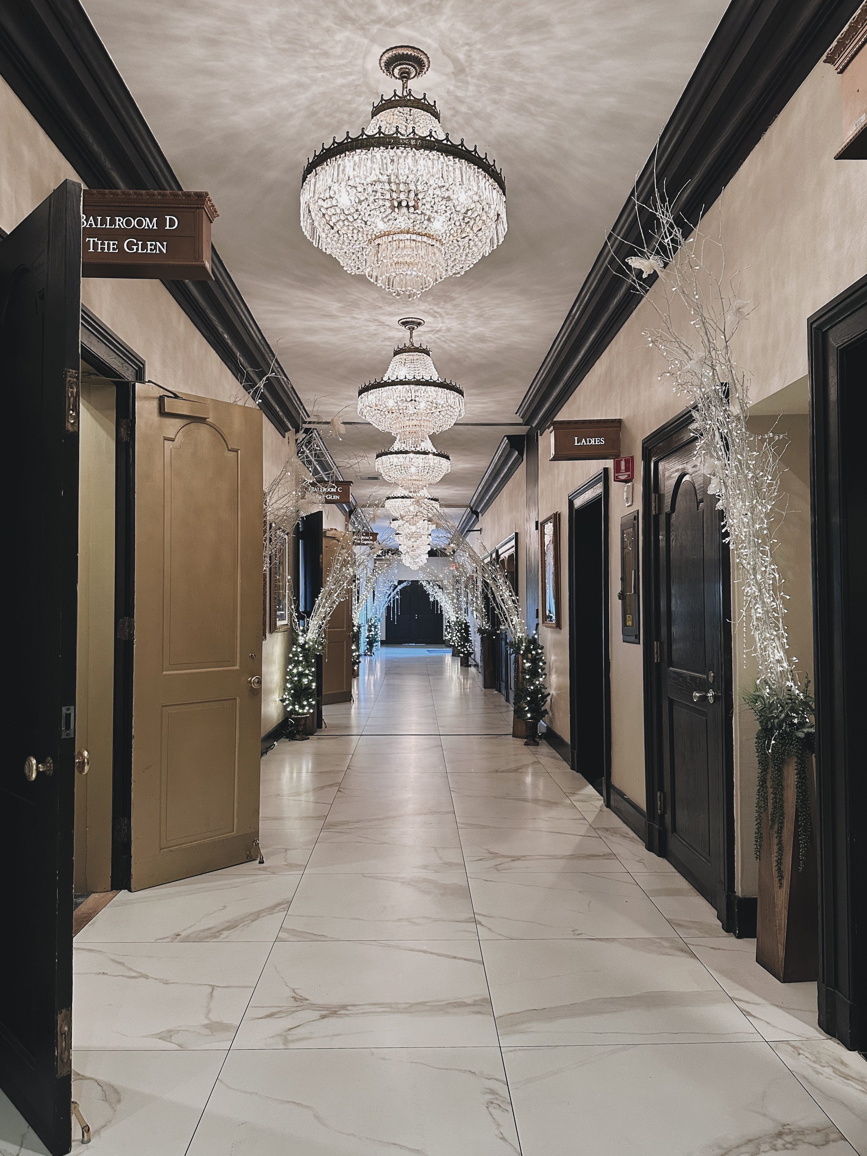 The hallways during the holiday season strike the right balance of timeless and seasonal. Evergreen garlands and silver lights carefully placed through the hallways, a curated take on Midwestern hospitality.