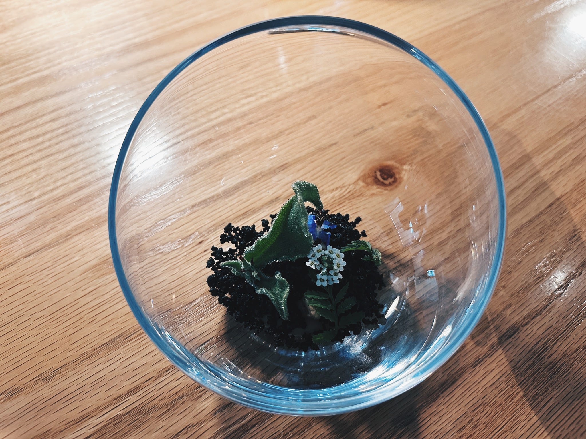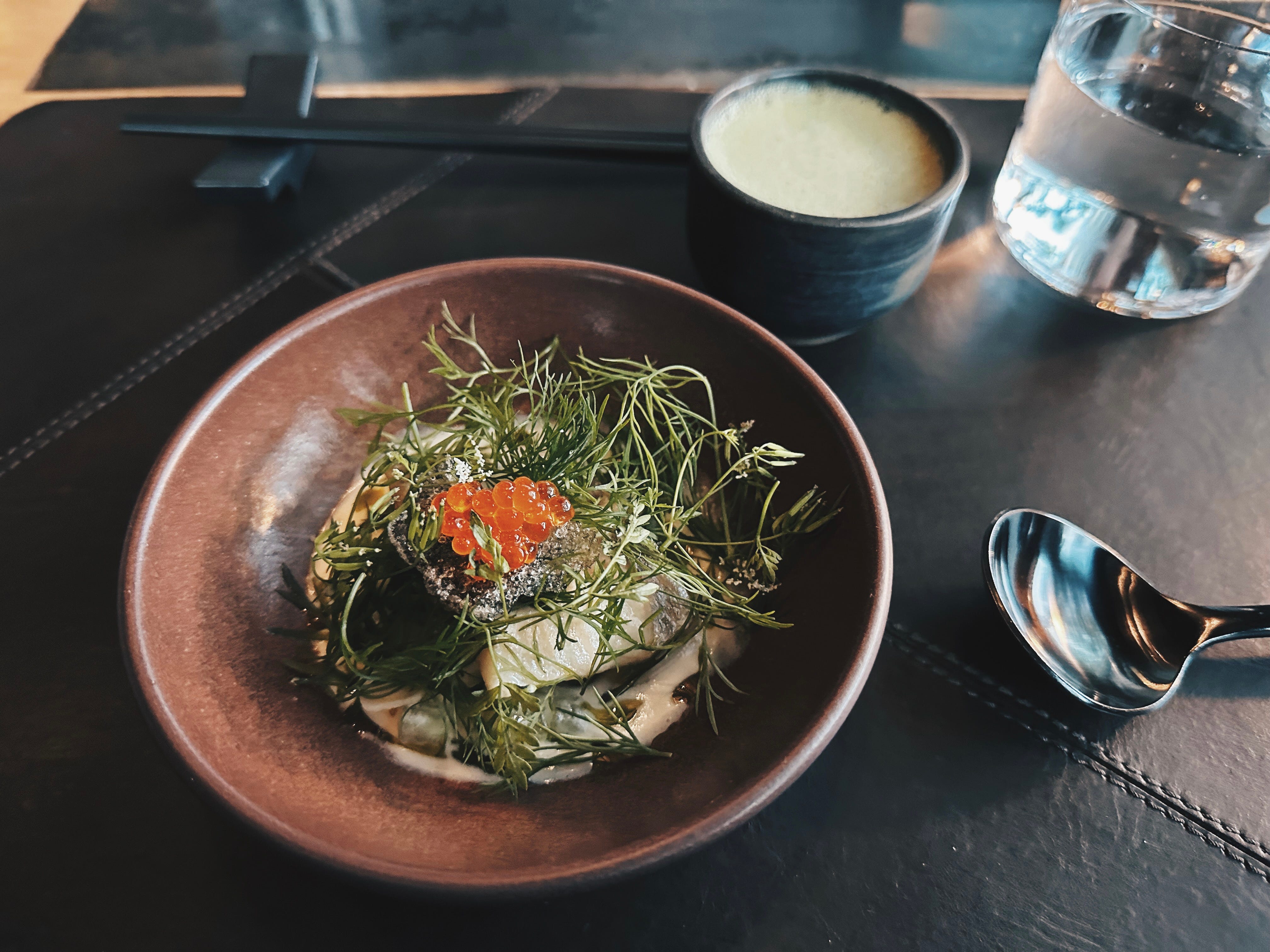 The restaurant occupies a single room in the heart of downtown Denver. Whites and warm wood with light filtering through large windows reflect the chef’s Scandanavian inspiration. The experience is a shared 18-seat communal bar centered around the hearth, creating an intimate dining experience that allows diners to participate in the kitchen.